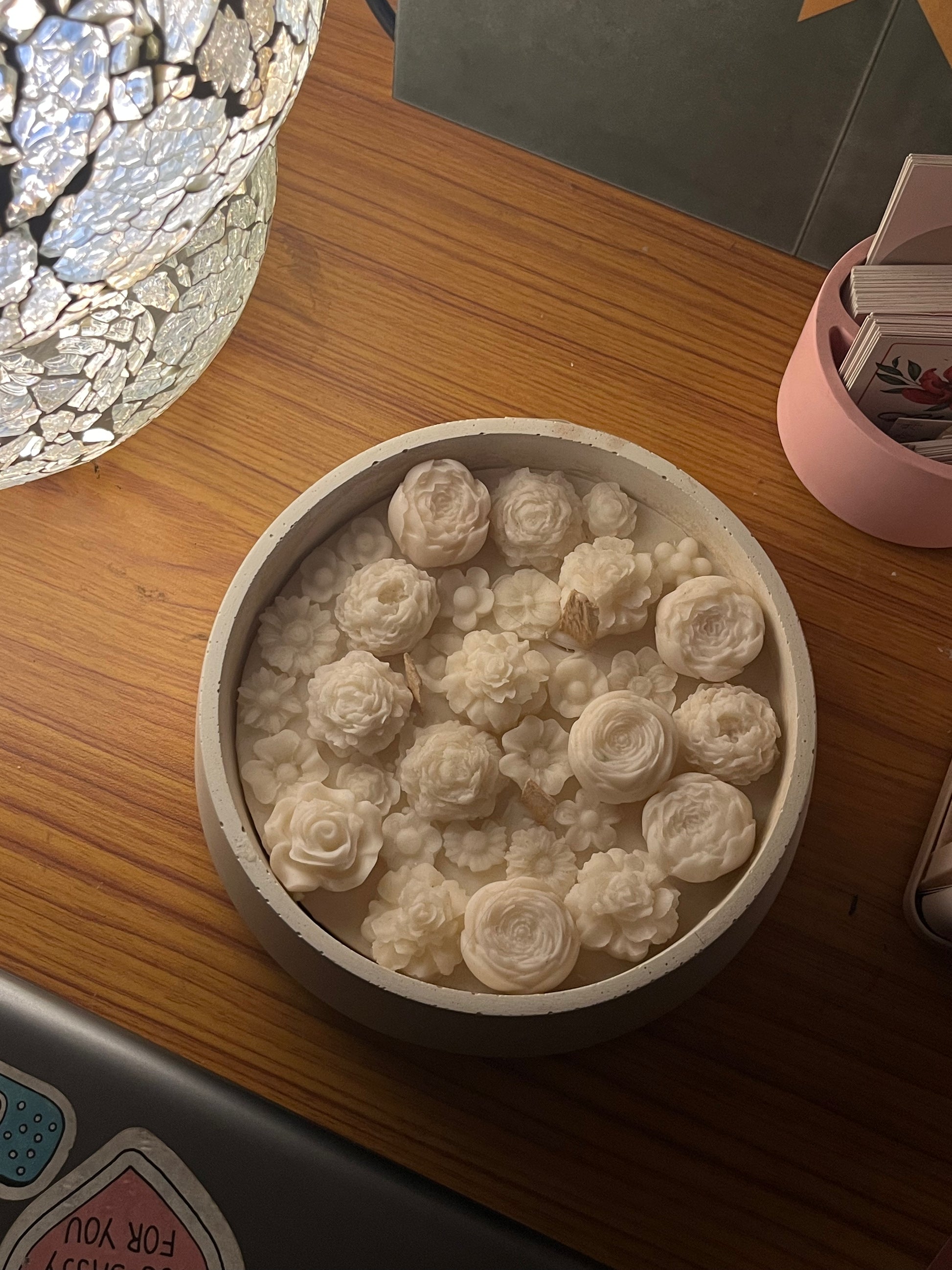 A classic bouquet candle collection made in the all white concrete vessels- all handmade with love.